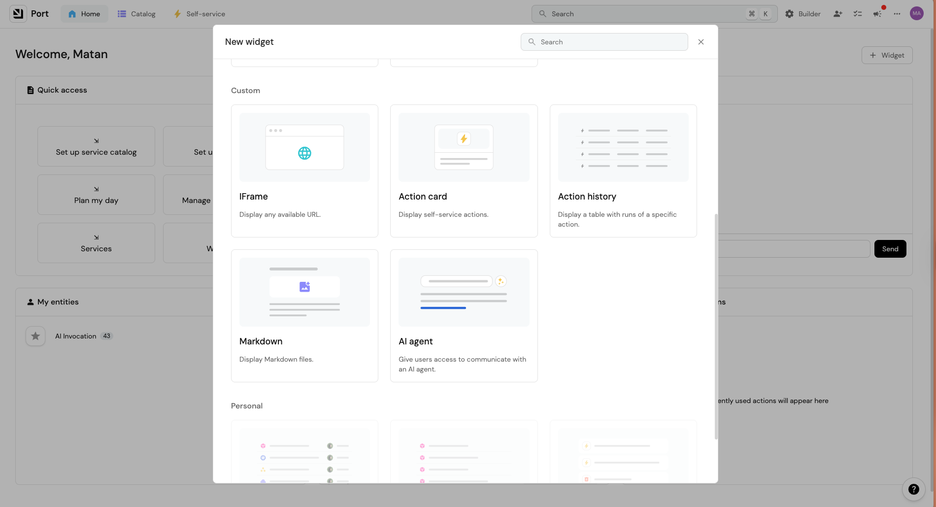 You can trigger AI agents through Port's actions and automations, enabling integration of AI capabilities into your existing workflows. This is the primary method for creating autonomous, machine-to-machine AI systems.