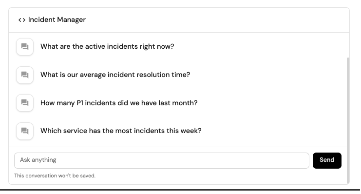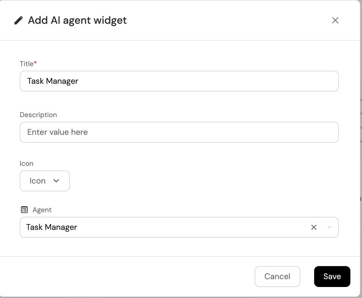 You can add AI agents directly to your dashboards as interactive widgets, providing easy access to their capabilities right where you need them.
