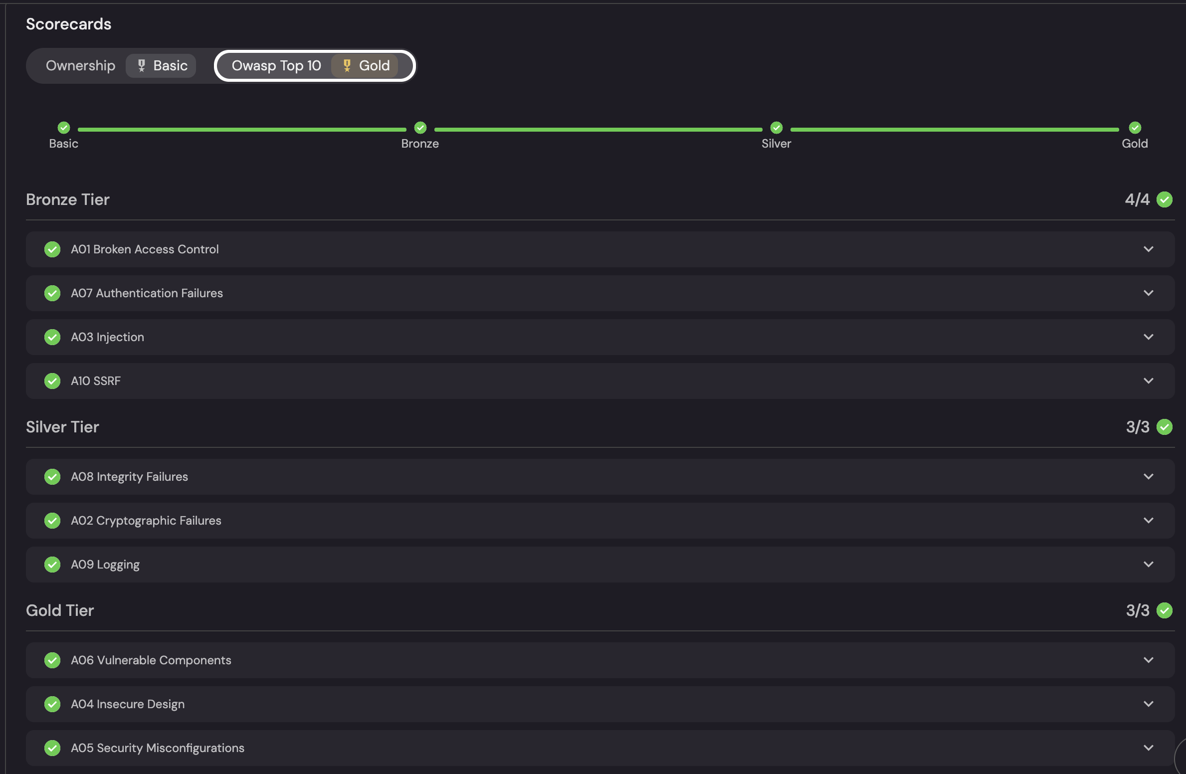 The final step is to create a scorecard that reflects the security maturity of a Respository