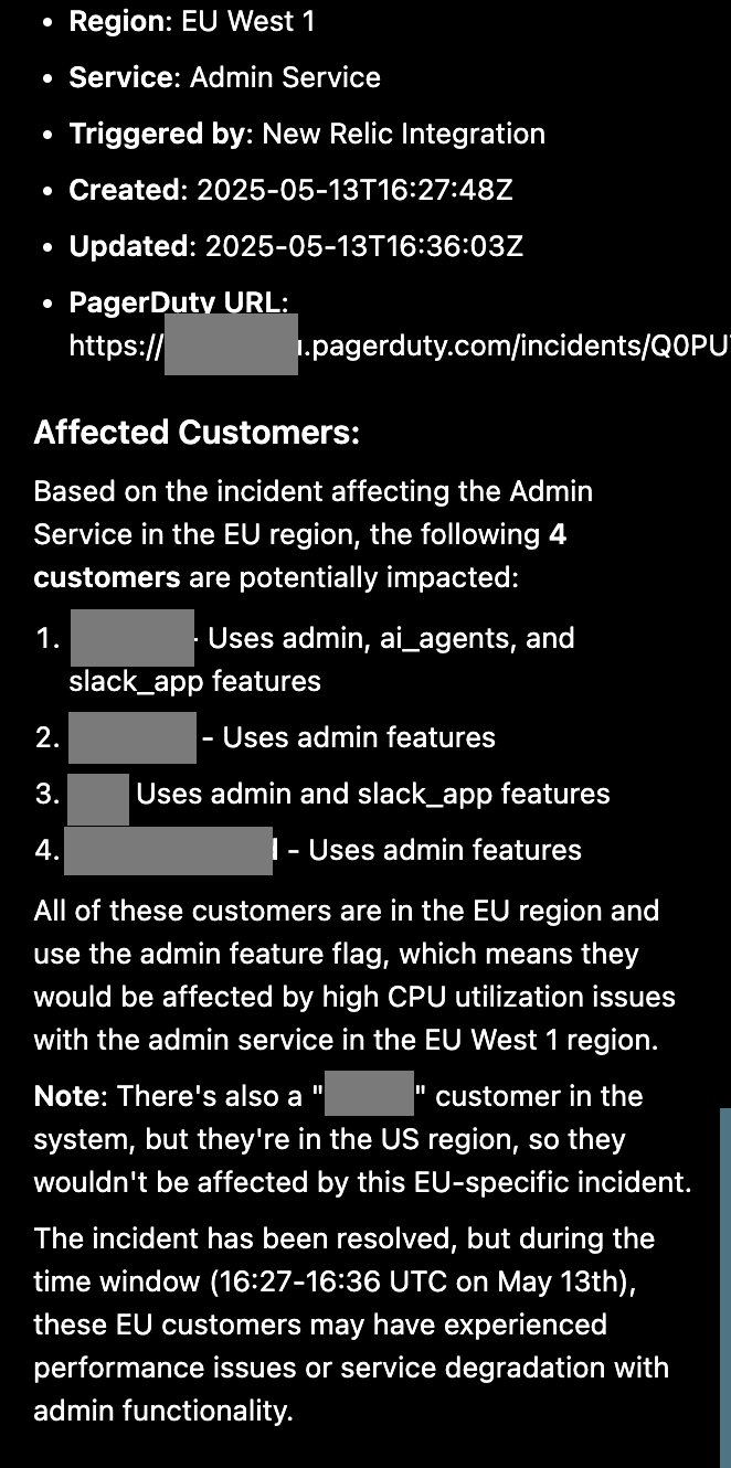 Whether it's finding out about incident resolution trends, or discovering more about current on-call assignments and active incidents, an AI Incident Manager Agent can help you.